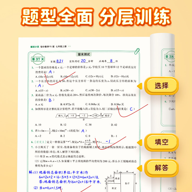 天猫易蓓初中数学睡前计算人教版北师大版口算运算解答题七八九年级上下册同步课本每日一练计算100基础题强化满分训练习题册练习本