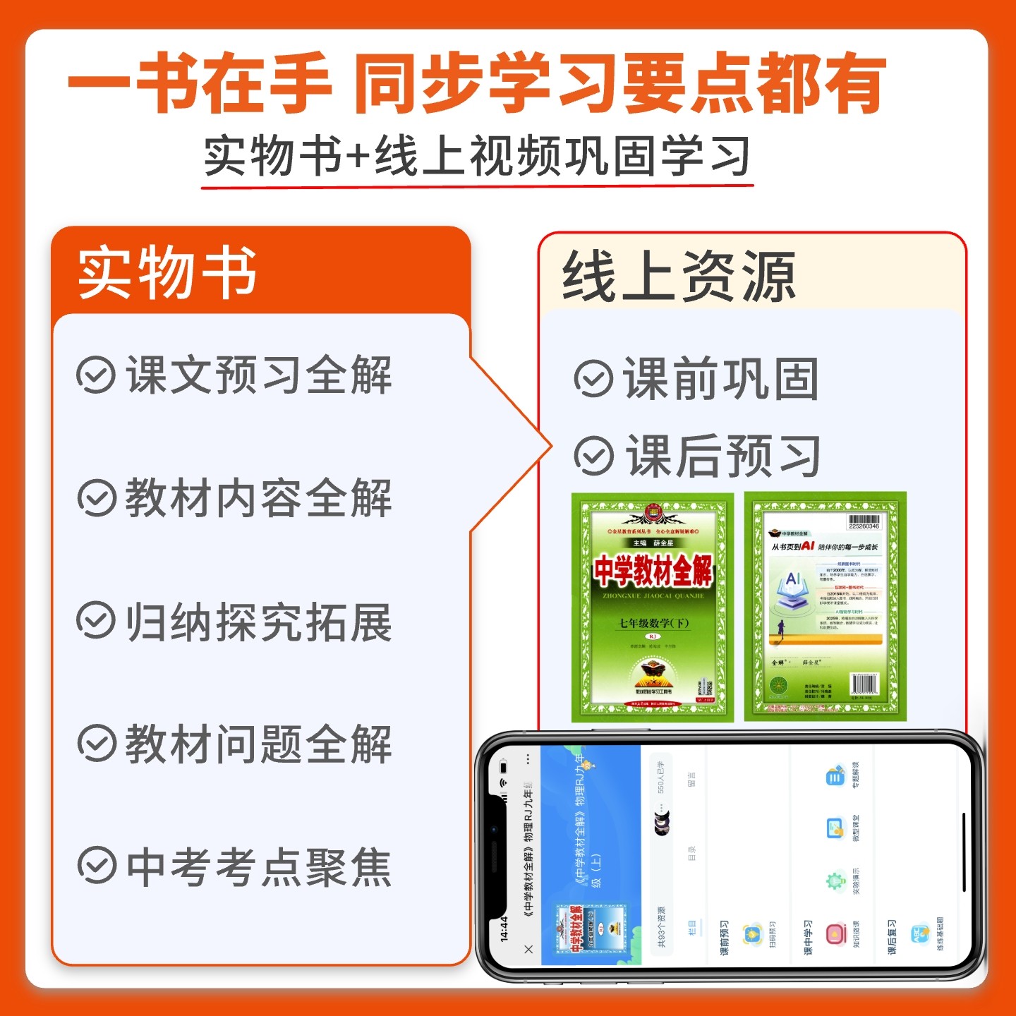 2026新版《中学教材全解》七年级下册全套教辅,紧扣人教版语文、数学、英语、道德与法治、历史、地理、生物七科教材,全面覆盖初一知识点。本书由一线名师精心编写,内容精准解读课标要求,突出重难点解析,配有典型例题、同步练习及中考链接,帮助学生夯实基础、提升能力。体例科学,讲练结合,配有思维导图和知识清单,便于预习、复习与巩固。作为《教材帮》系列优质教辅,本书注重学法指导与素养培养,是七年级学生同步学习、高效备考的得力助手,助力学生轻松掌握课本内容,稳步提升学业成绩。