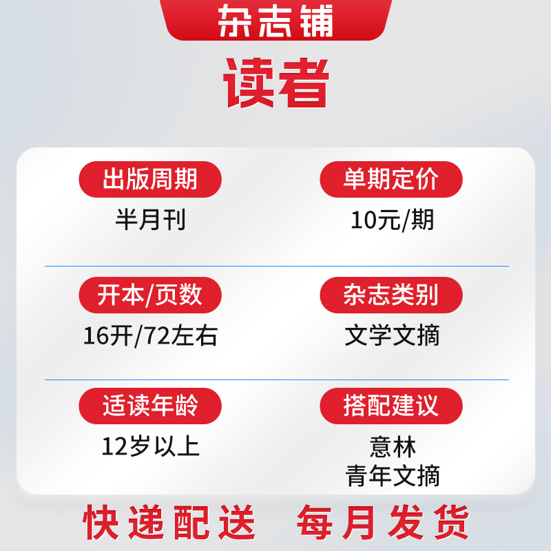 天猫读者杂志 2026年1月起订 1年共24期 全年订阅 青年读者文摘 初高中生青春校园文学作文素材积累语文学习辅导书籍期刊